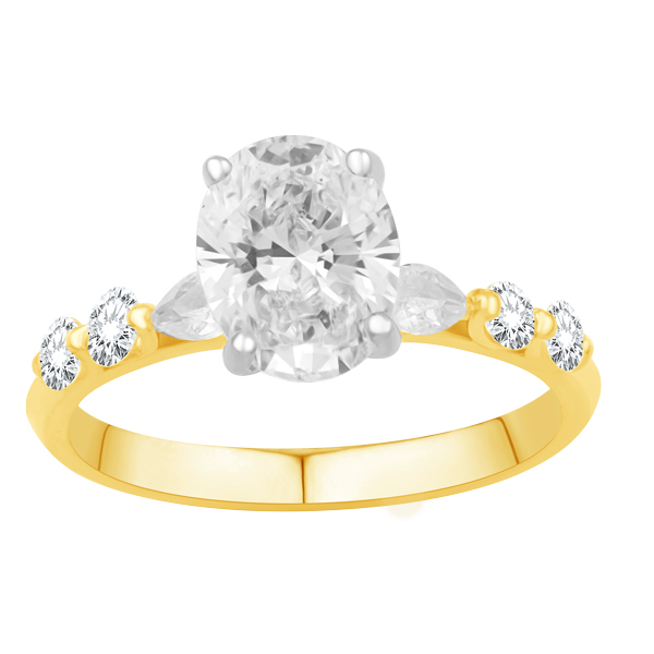 14K FLOWER YELLOW GOLD ENGAGEMENT RING WITH ROUND & MARQUISE DIAMONDS